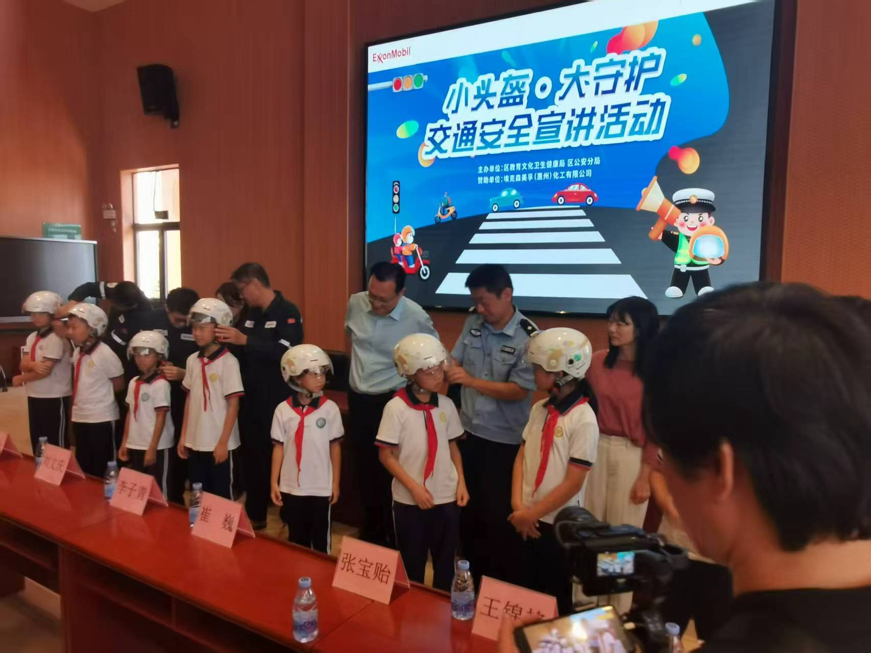 为筑牢交通安全防线,培养未成年人文明出行习惯,从源头减少道路交通事故,近日,“小头盔・大守护” 交通安全宣讲活动在大亚湾澳头第六小学顺利举办。此次活动由埃克森美孚公司、大亚湾区教育文化卫生健康局、大亚湾公安分局交管大队、澳头街道办、红树林社区多方联合开展,通过 “物资保障 + 知识普及 + 仪式强化” 的模式,为该校学生打造了一场沉浸式交通安全教育体验。