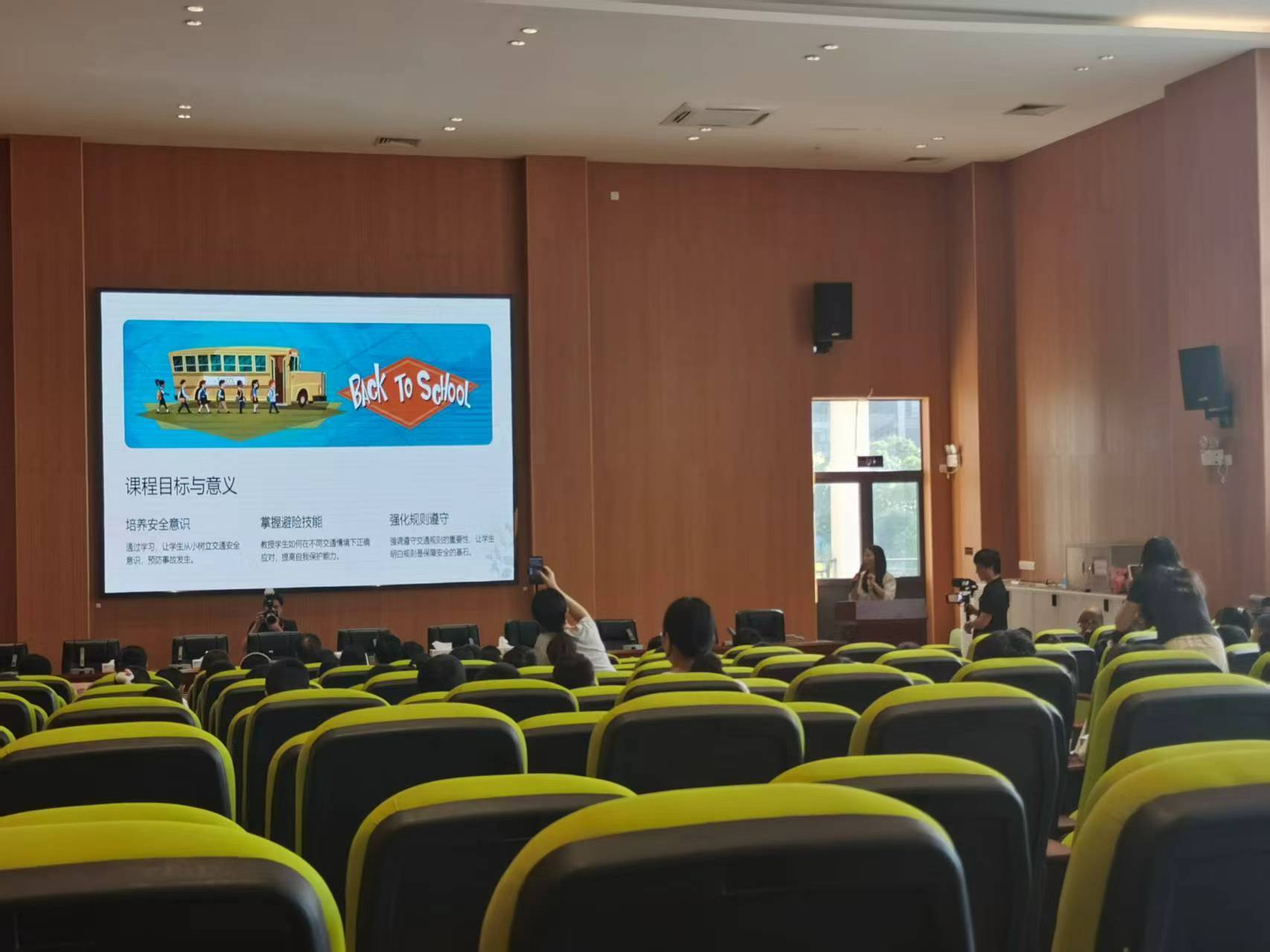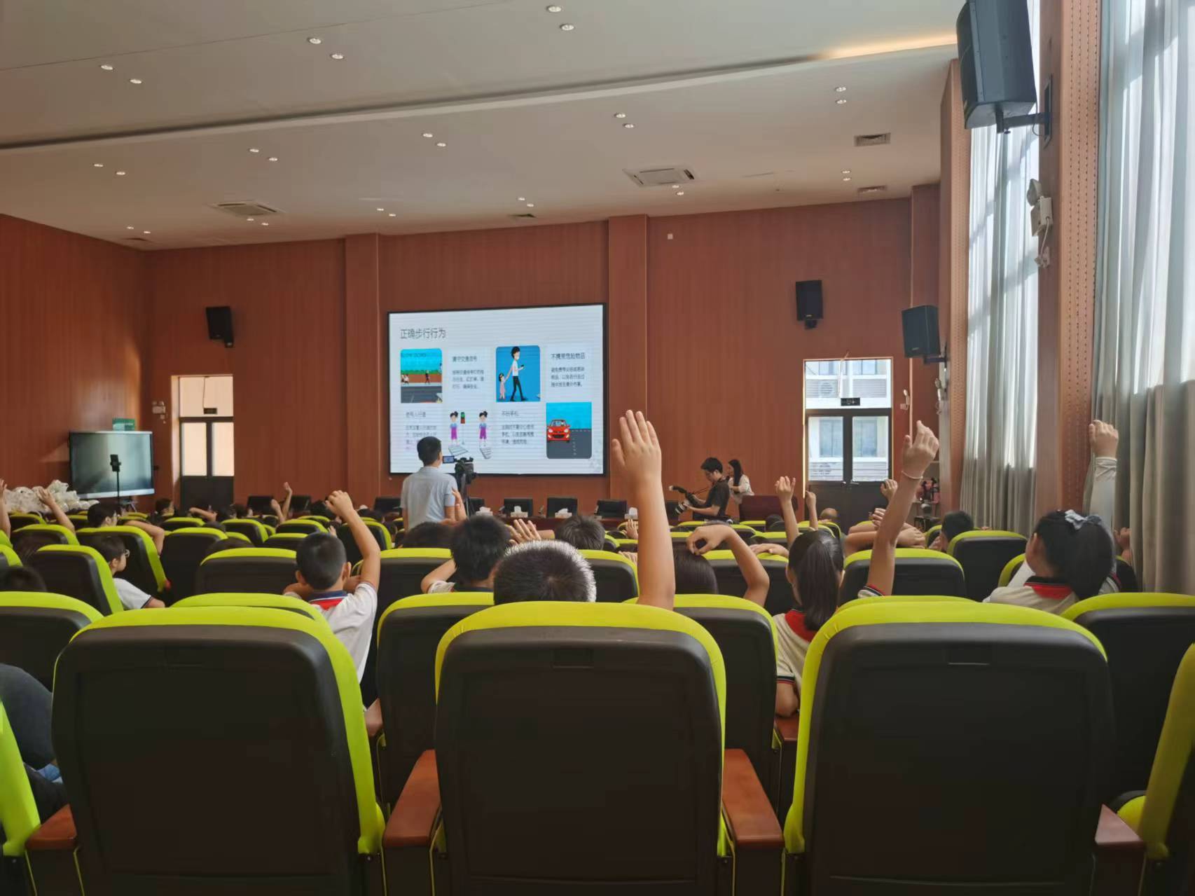 随后,交通安全宣传老师结合小学生认知水平,创新采用 “案例讲解 + 互动问答 + 动画演示” 的形式:通过播放涉未成年人交通事故警示短片,直观展现未戴头盔骑行的风险,让学生深刻认识到交通事故的严重后果;展示不同场景下的交通标志模型,让学生现场识别 “禁止通行”“注意儿童” 等标志含义,增强学生对交通标志的认知和理解;设置 “交通知识小问答” 环节,围绕 “过马路要注意什么”“头盔有哪些保护作用” 等问题与学生互动,学生们踊跃举手、积极抢答,现场氛围热烈。